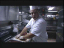 | (Narrator) While at sea, the galley is consistently the busiest area of the ship. The galley is operational from 5AM to 3AM the next morning - 18 hours every day, seven days a week. Five cooks prepare four meals a day, in addition to snacks, in a perpetual effort to keep a hungry crew satisfied and nourished. Once a week, the crew is treated to a special meal, usually consisting of steak and seafood. |